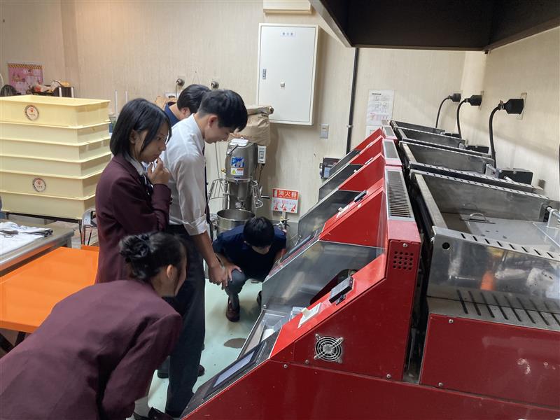 先日、生徒たちは、「和バームクーヘン工房つか本」さんへお伺いし、工房見学と打ち合わせを行いました。