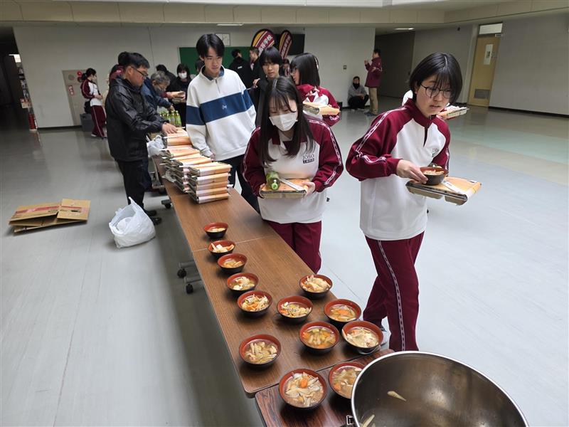 同窓会からは、清掃用具に加え、お弁当や焼き芋、温かい汁物などの差し入れをしました。
